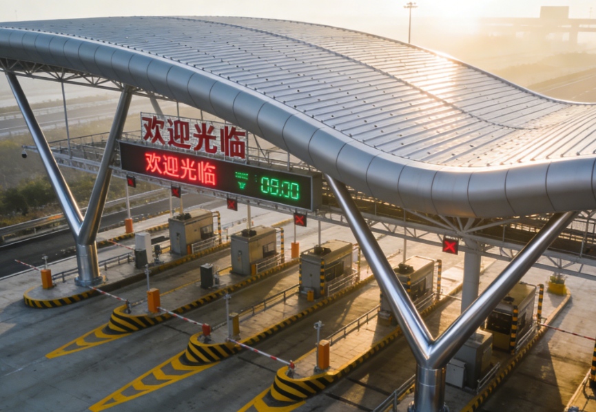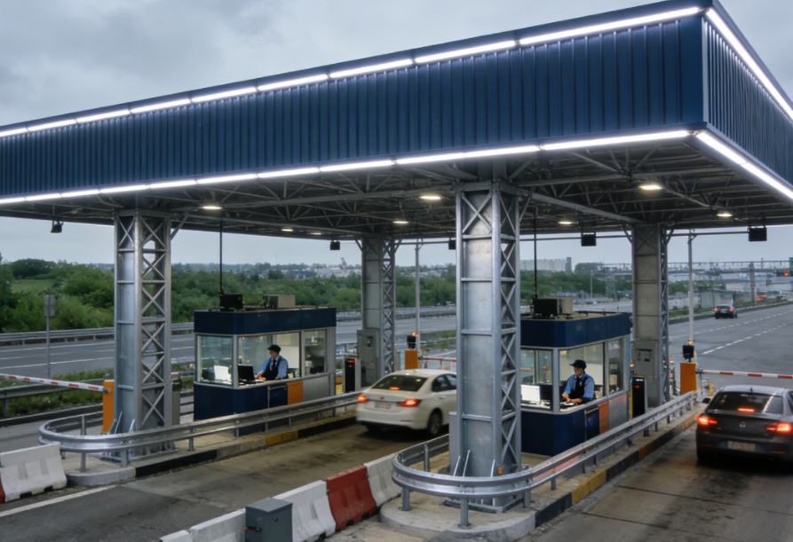 Een tolstation met stalen constructie verwijst naar de overkapping en de ondersteunende gebouwconstructie, opgetrokken uit een primair stalen frame, die is ontworpen om beschutting, montageruimte voor apparatuur en operationele ruimte te bieden boven tolbanen op snelwegen, bruggen of tunnels. Deze faciliteit integreert constructietechniek, verkeersmanagement en architectonisch ontwerp om een duurzame, functionele en vaak iconische toegangspoort te creëren die het punt van tolbetaling markeert.